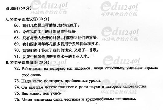 2008年成人高考專(zhuān)升本俄語(yǔ)試題答案