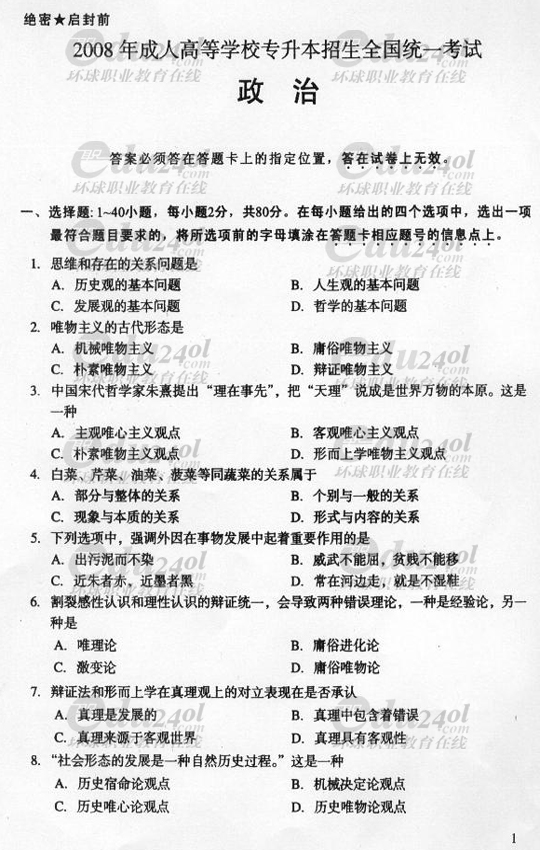 - 2025成人高考試卷政治真題及答案匯總已更新2025-10-22