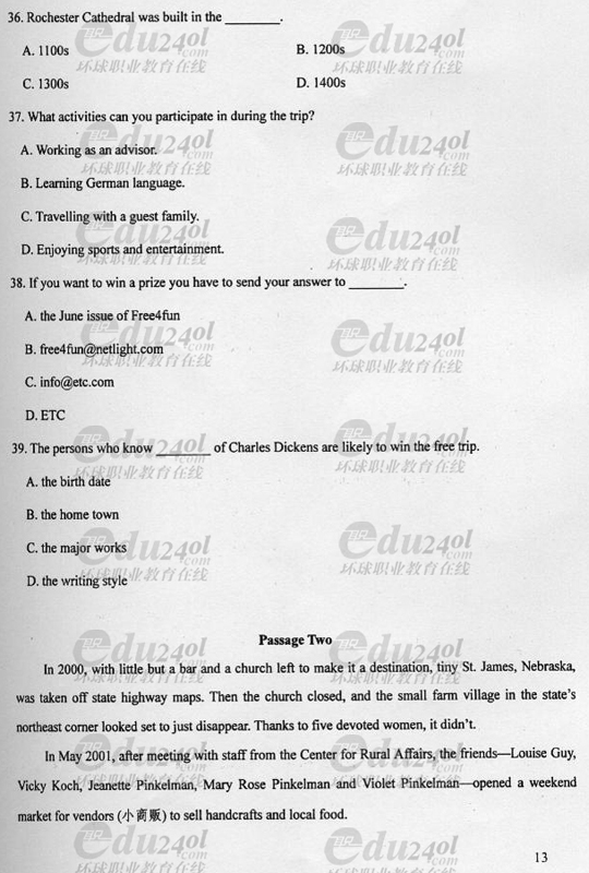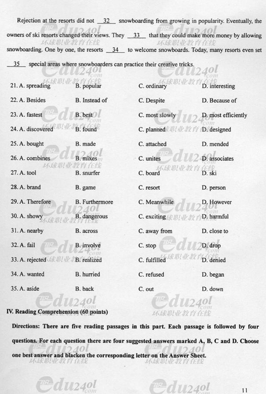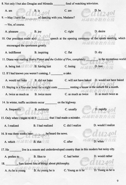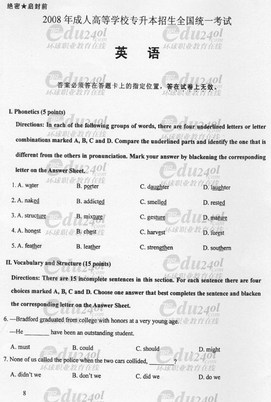 2008年成人高考專升本英語試題