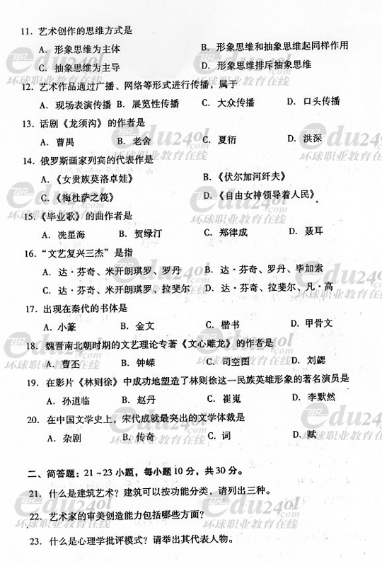 2008年成人高考專升本藝術(shù)概論試題