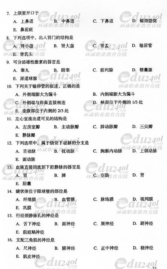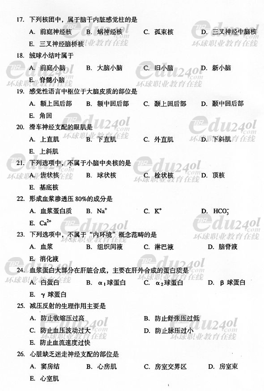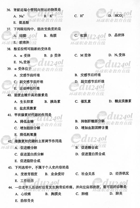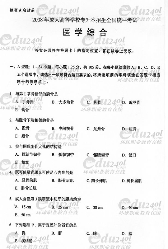 2008年成人高考專升本醫(yī)學綜合試題