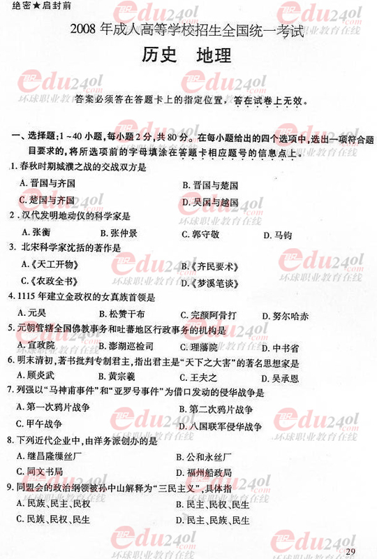 - 2025成人高考試卷政治真題及答案匯總已更新2025-10-22