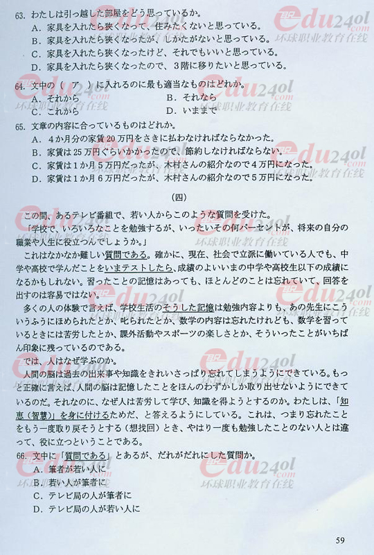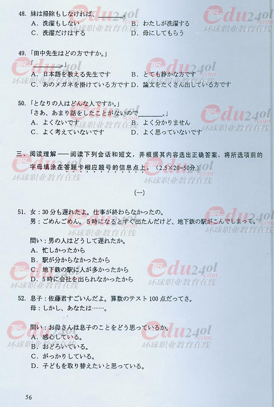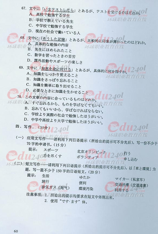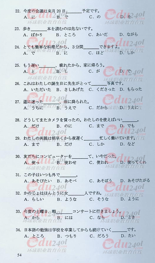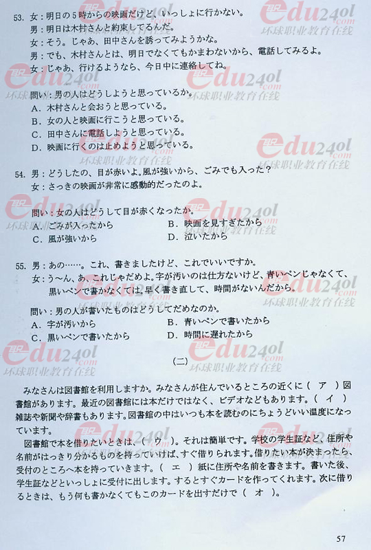 2008年成人高考高起點(diǎn)日語(yǔ)試題