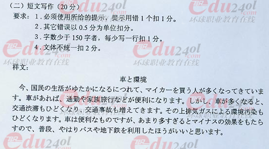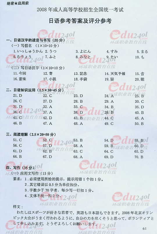 2008年成人高考高起點日語試題答案