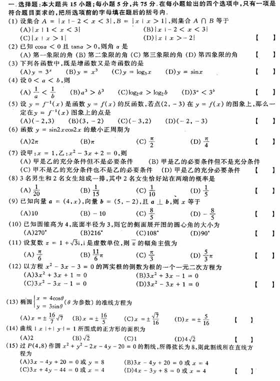 2002年全國(guó)成人高考統(tǒng)一考試數(shù)學(xué)(理)試卷