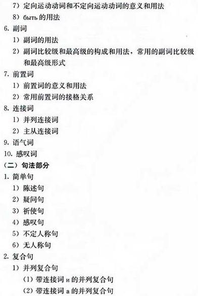 2007年成考高起點俄語考試大綱