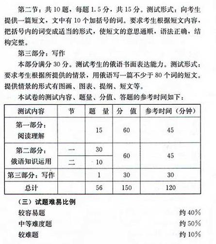 2009年成考高起點俄語考試大綱
