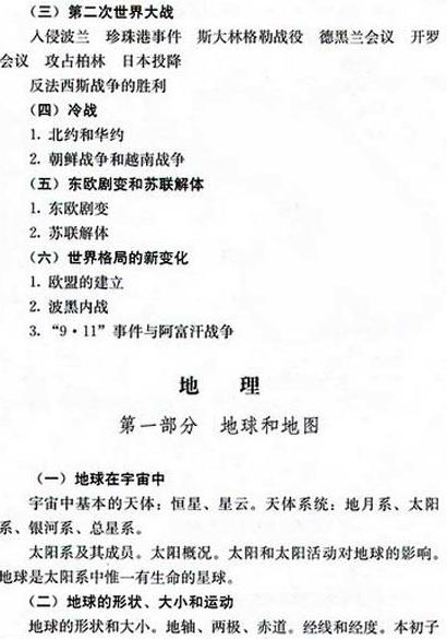 2009年成考高起點(diǎn)歷史地理考試大綱