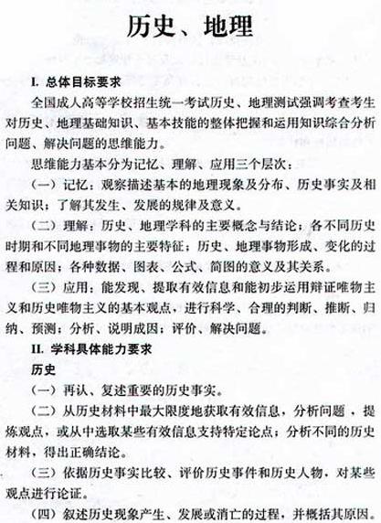 教育部消息:2009年成人高考高起點(diǎn)史地綜合沿用2007年高起點(diǎn)史地綜合考試大綱