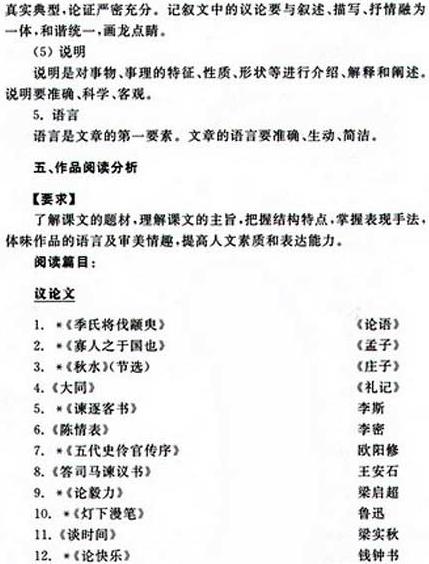 2009年成考專升本大學(xué)語文考試大綱