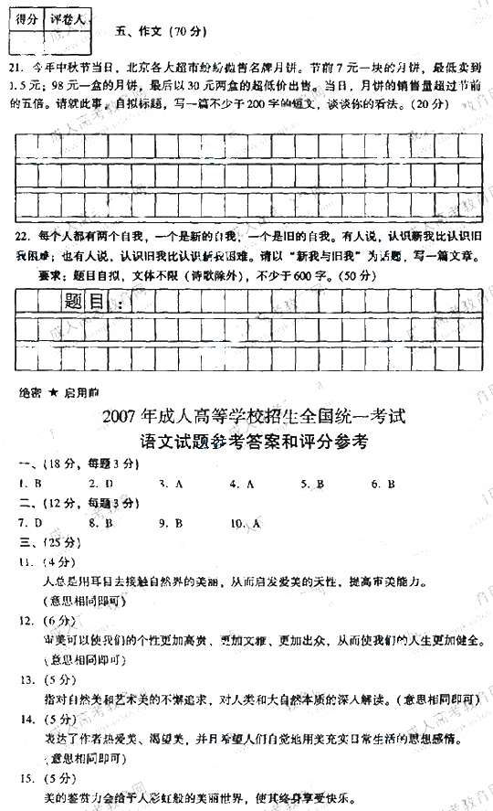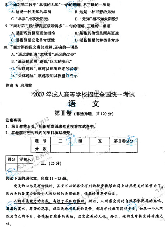- 2025成人高考語文真題及答案解析匯總2025-10-22