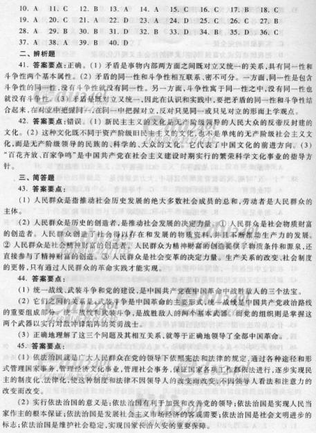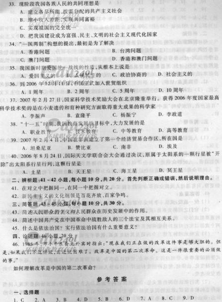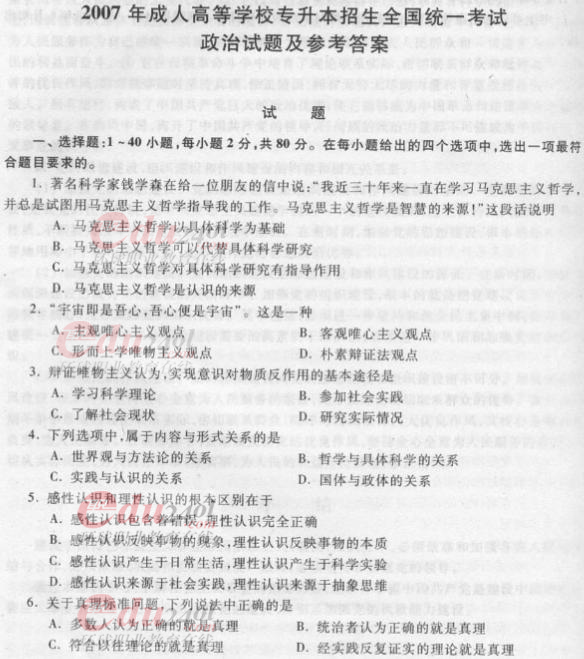 2007年成人高等學(xué)校專(zhuān)升本政治試題及答案