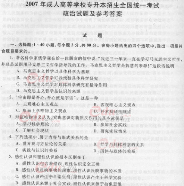 - 2025成人高考試卷政治真題及答案匯總已更新2025-10-22