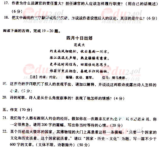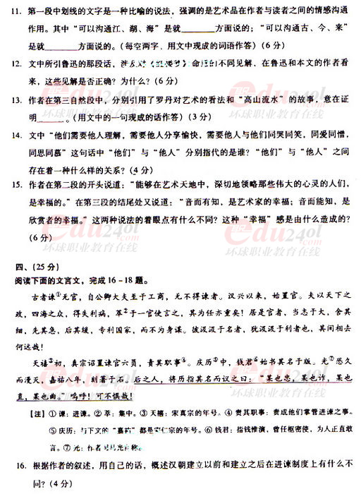 - 2025成人高考語文真題及答案解析匯總2025-10-22