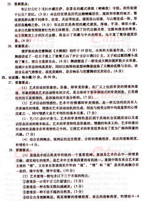 2009年成人高考專升本藝術(shù)概論參考答案
