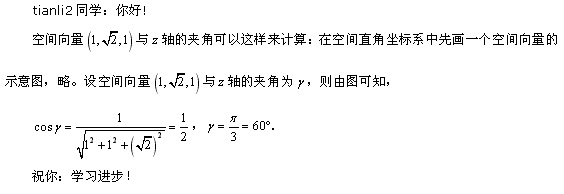 空間向量 (1,根號2,1)與z軸的夾腳等于多少度?