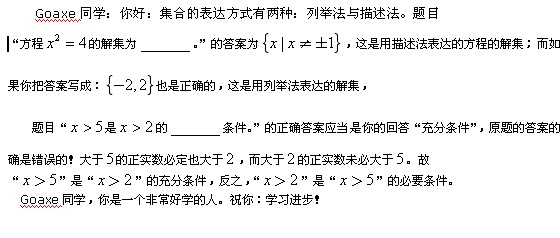 課堂練習 計算題 第4小題中,X>5可以證明必然X>2,這是充分條件,為什么答案中卻是“必要條件”呢?是我錯我還是答案錯了,如果是我錯了,為什么?