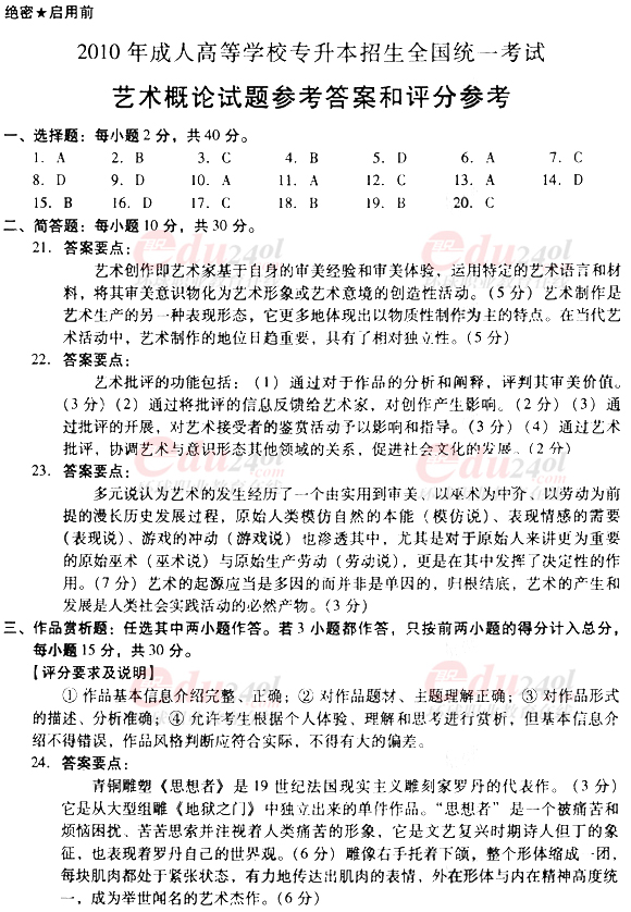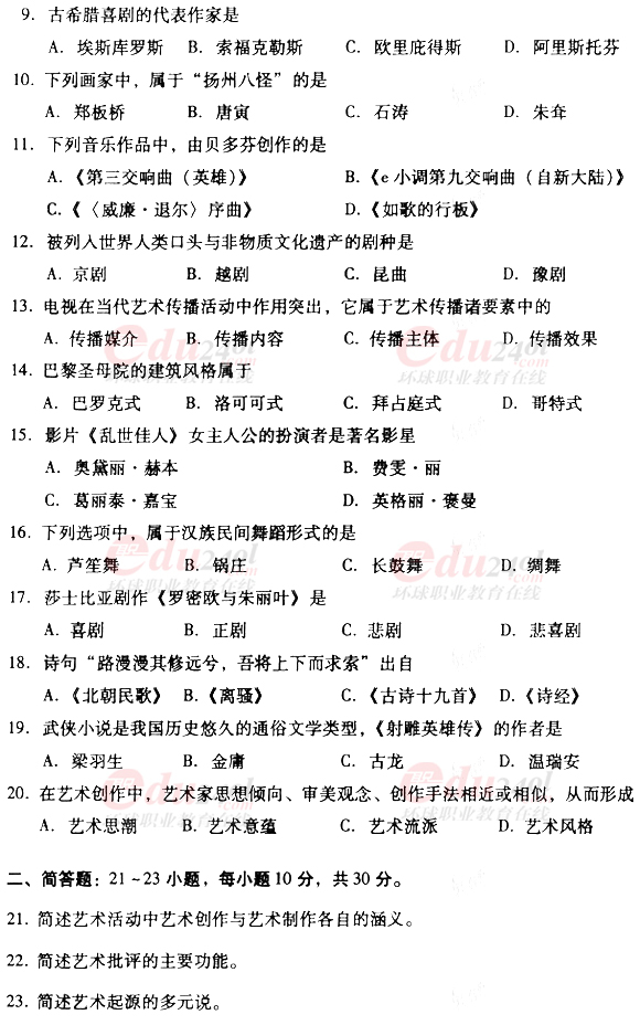 2010年成考專升本藝術(shù)概論真題及答案
