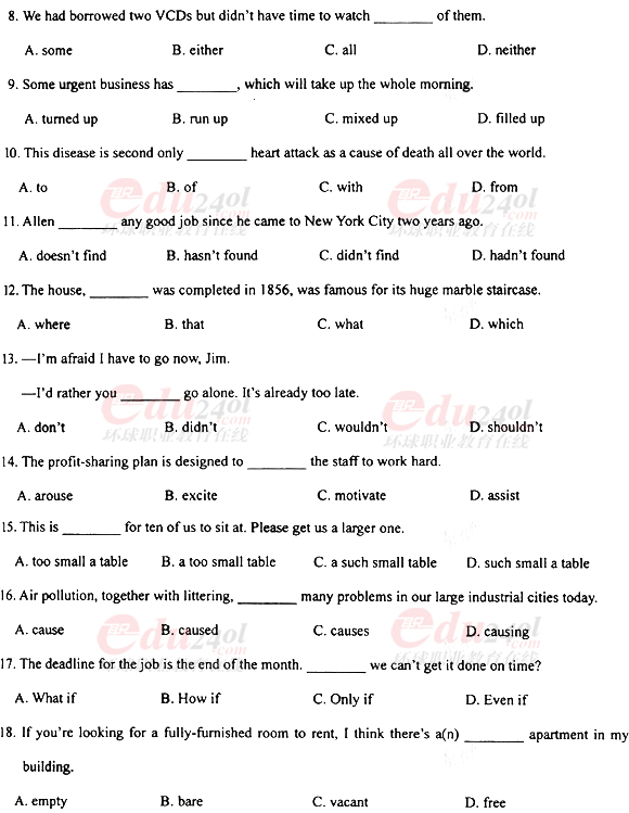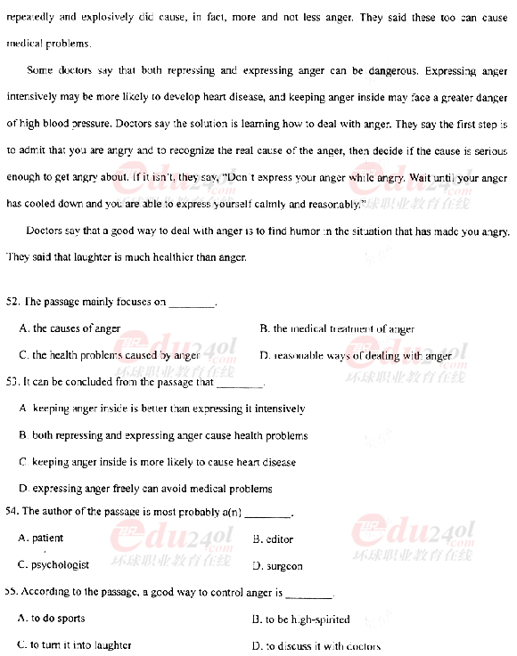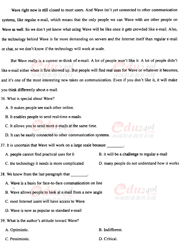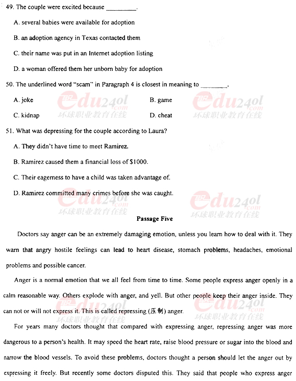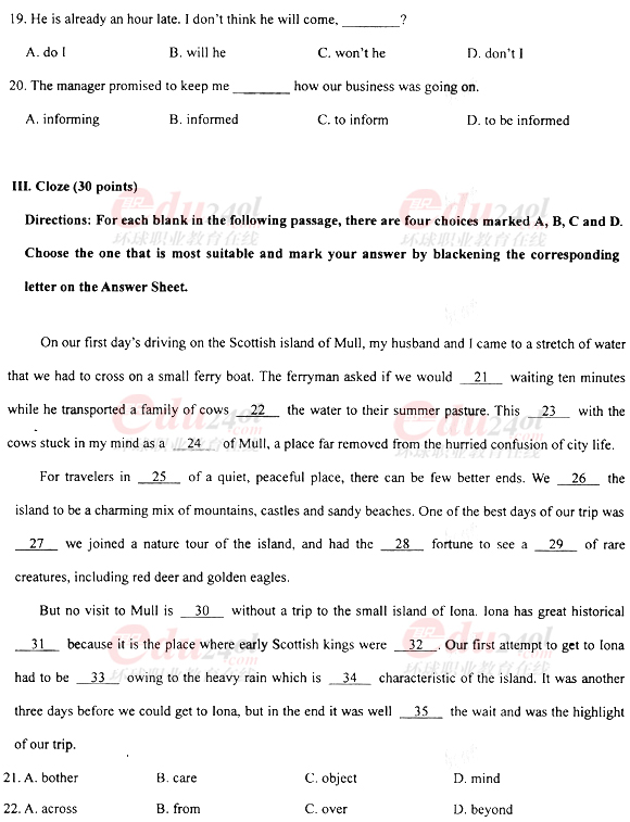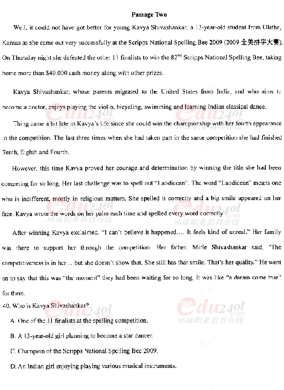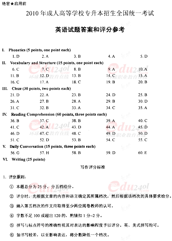 2010年成考專(zhuān)升本英語(yǔ)真題及答案