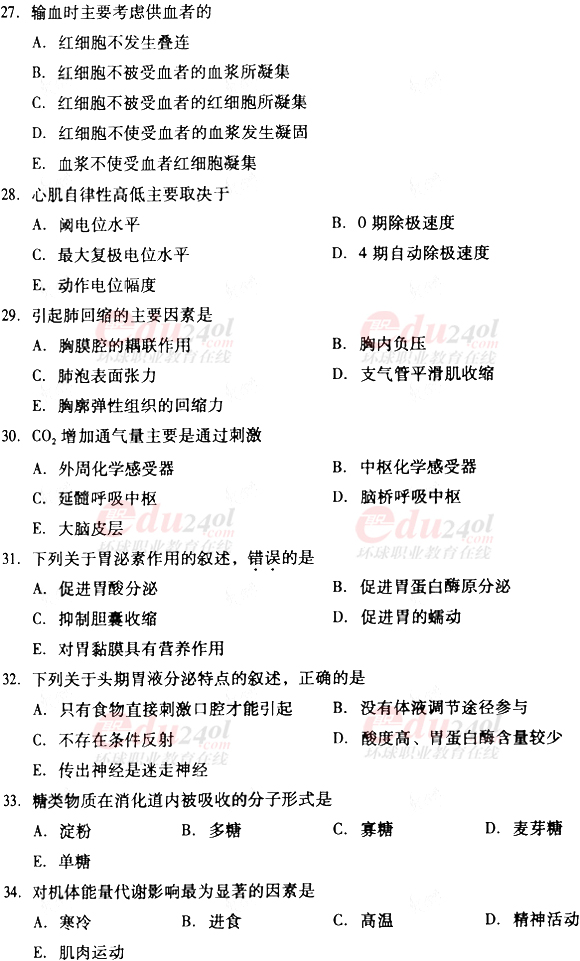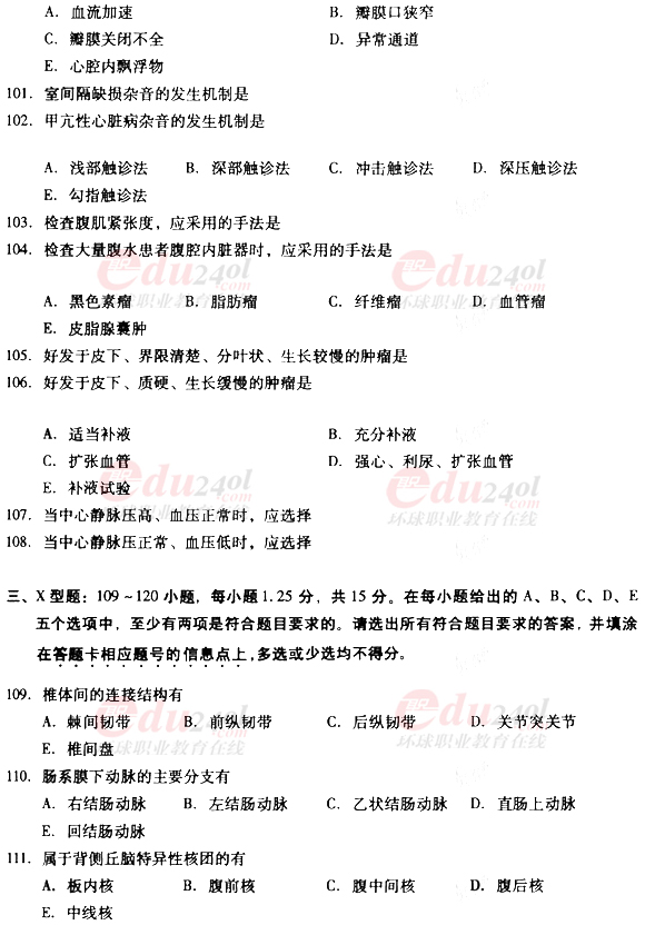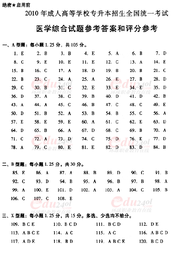 2010年成考專升本醫(yī)學(xué)綜合真題及答案