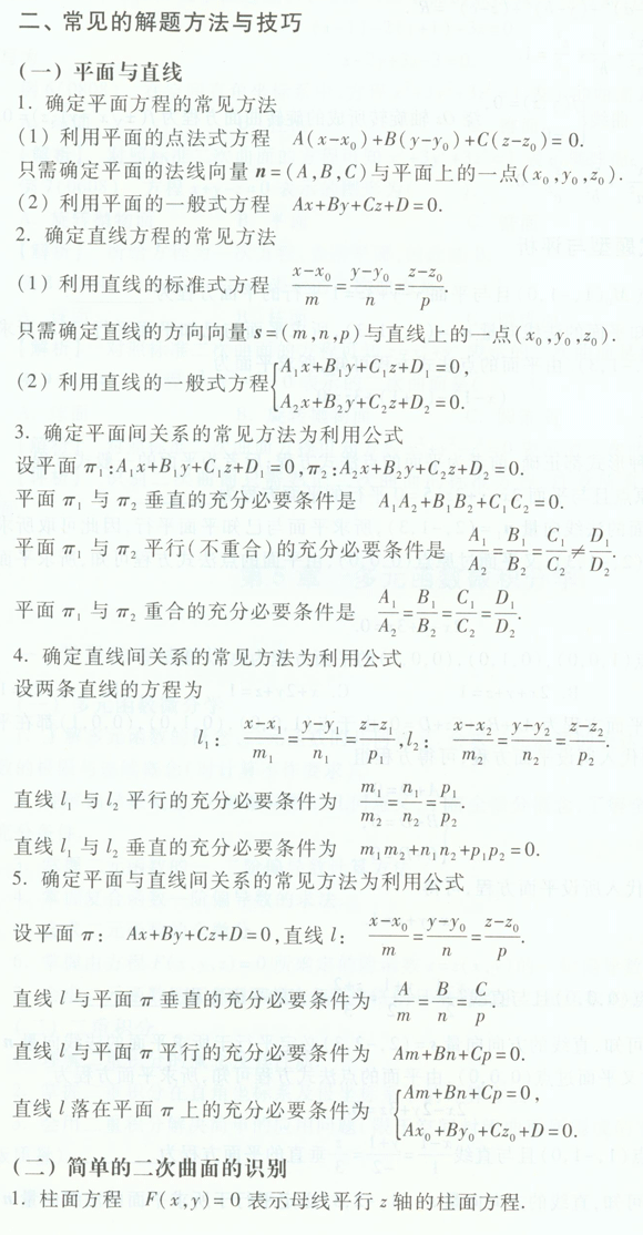 成考專升本高數(shù)(一)復習:空間解析幾何