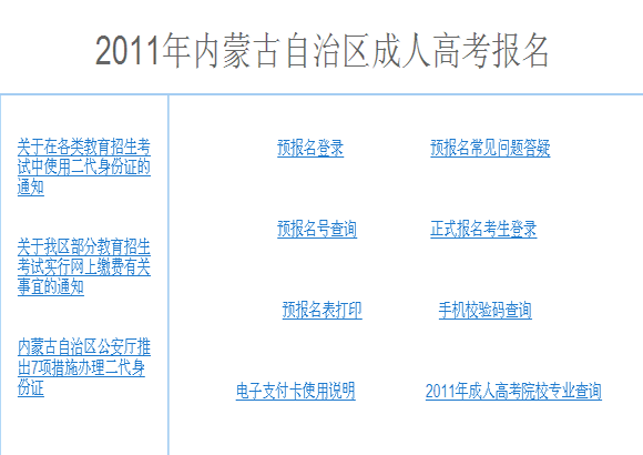 內(nèi)蒙古自治區(qū)2011年成人高考報名入口