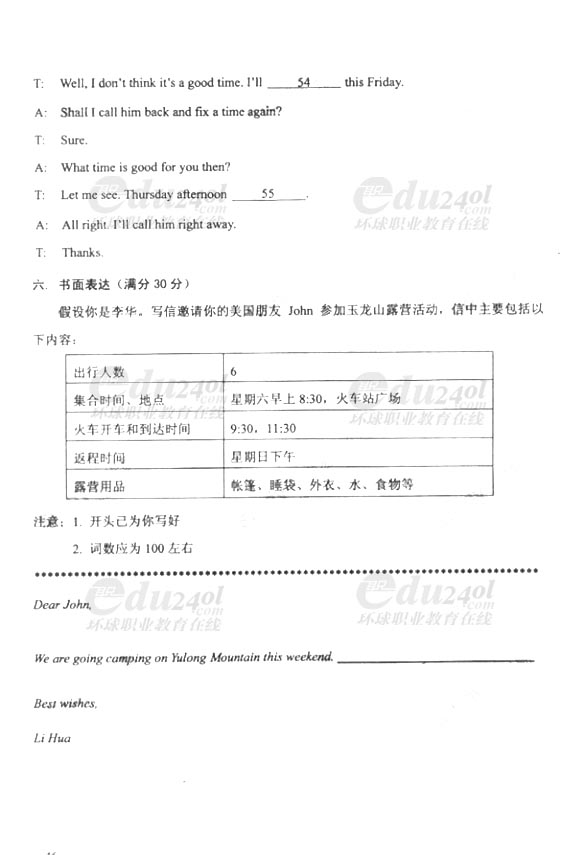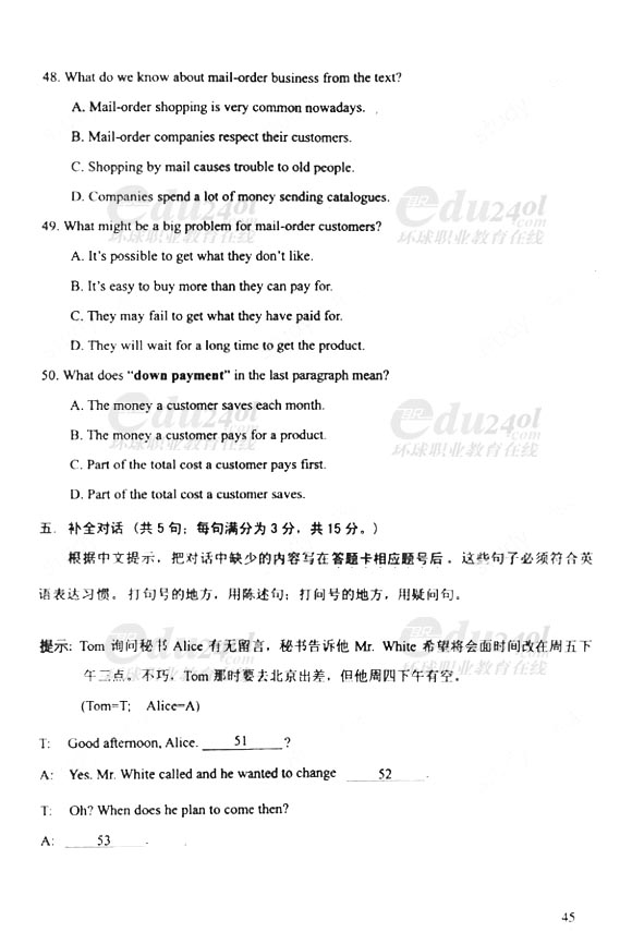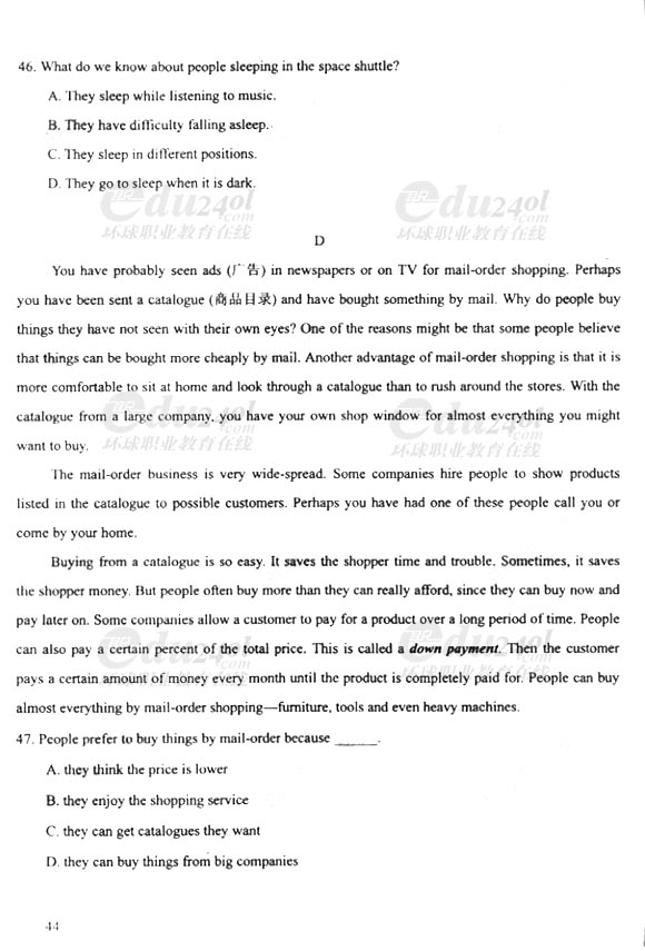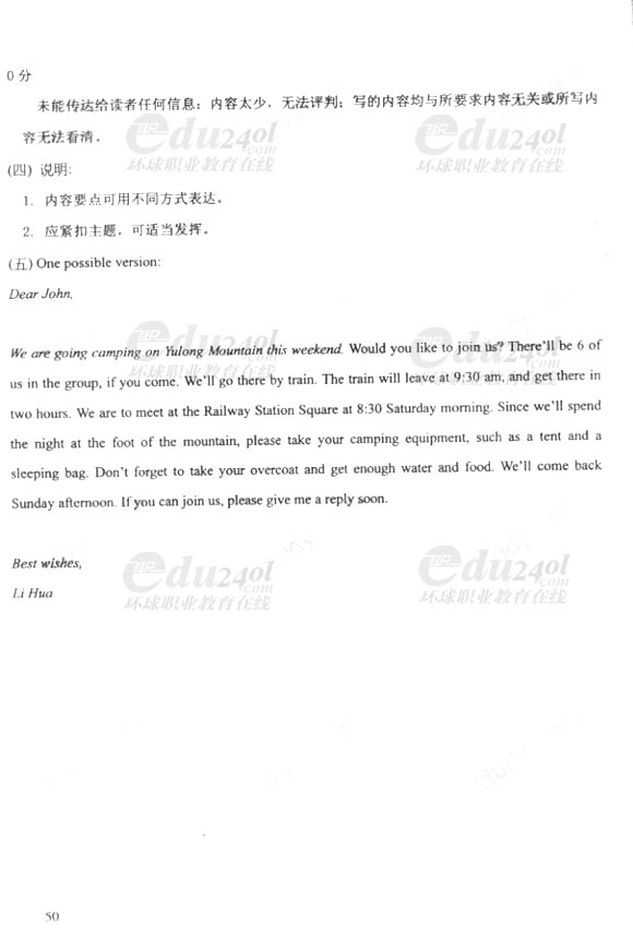 2011年成人高考(高起點(diǎn))英語(yǔ)試卷及答案