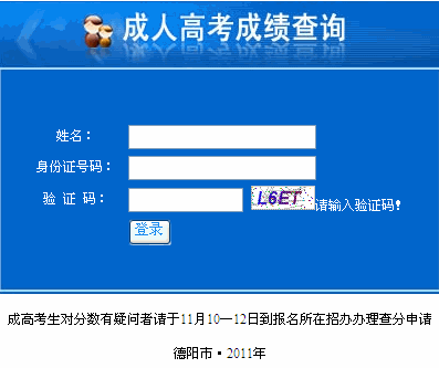 四川德陽2011年成人高考成績查詢