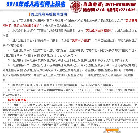 遼寧省2012年成人高考網(wǎng)上報(bào)名入口開通