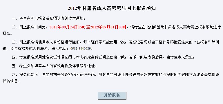 甘肅省2012年成人高考報名入口開通