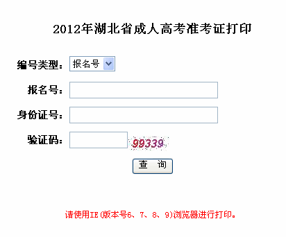 點(diǎn)擊進(jìn)入>>湖北省2012年成人高考準(zhǔn)考證打印