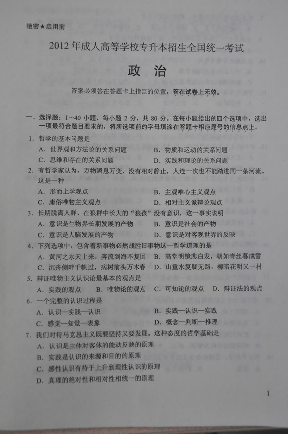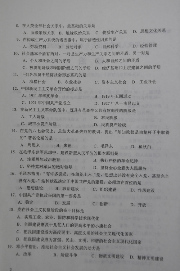- 2025成人高考試卷政治真題及答案匯總已更新2025-10-22