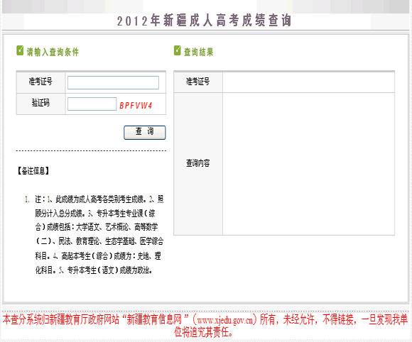 新疆2012年成人高考成績(jī)查詢?nèi)肟?/h1>