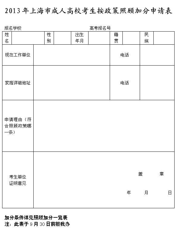 上海市成人高校考生按政策照顧加分申請表.doc