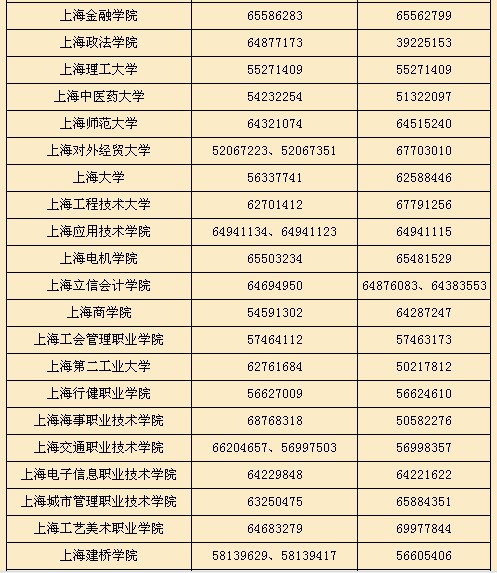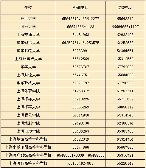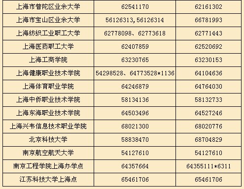 上海市2013年各成人高校招生錄取咨詢及監(jiān)督電話