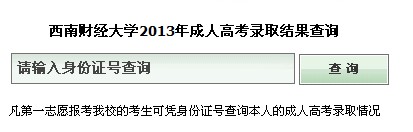 摘要 西南財(cái)經(jīng)大學(xué)2013年成人高考錄取結(jié)果查詢?nèi)肟?