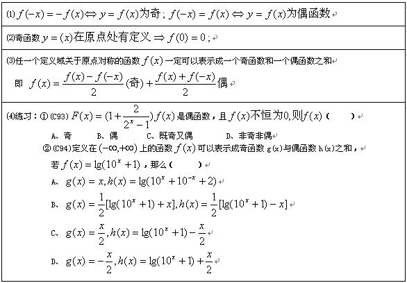 2014年成人高考高起點數(shù)學(xué)(文)公式復(fù)習(xí):函數(shù)的奇偶性