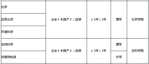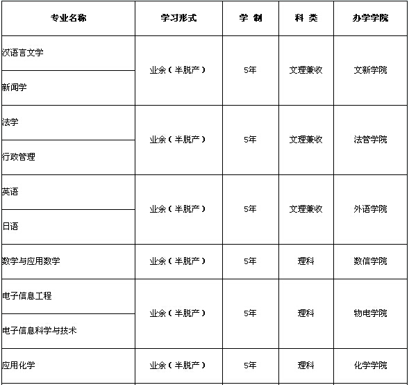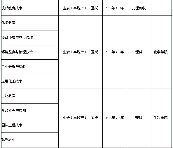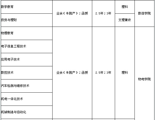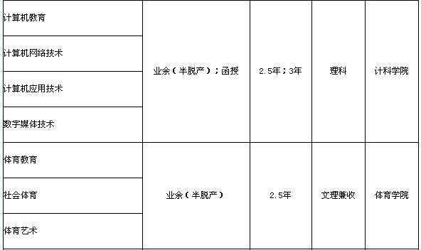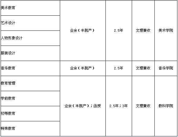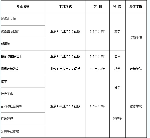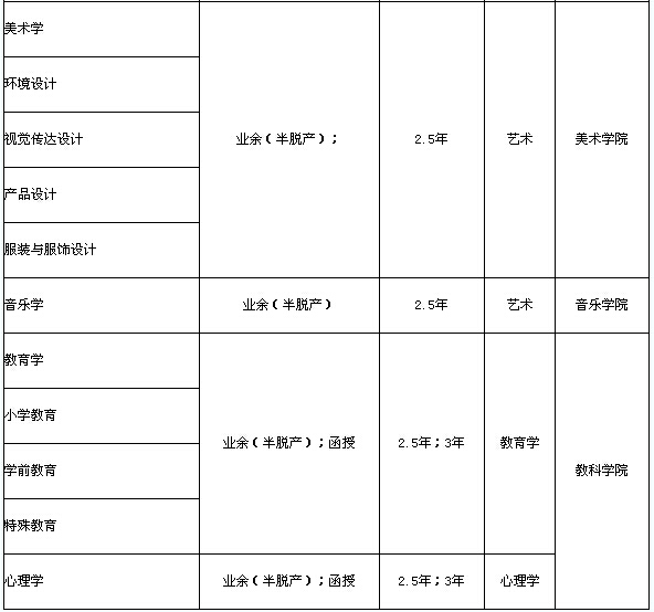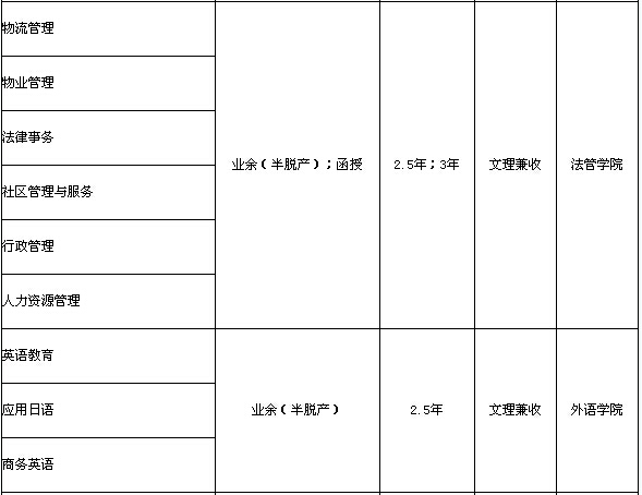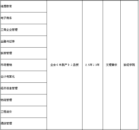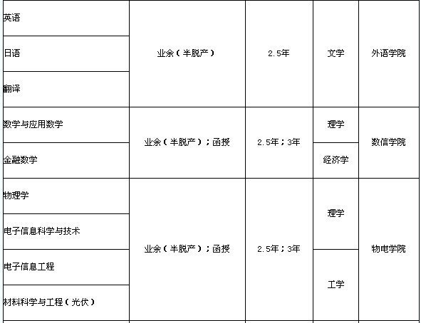 注:業(yè)余(半脫產(chǎn))學(xué)制為2.5年;函授學(xué)制為3年。