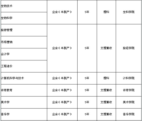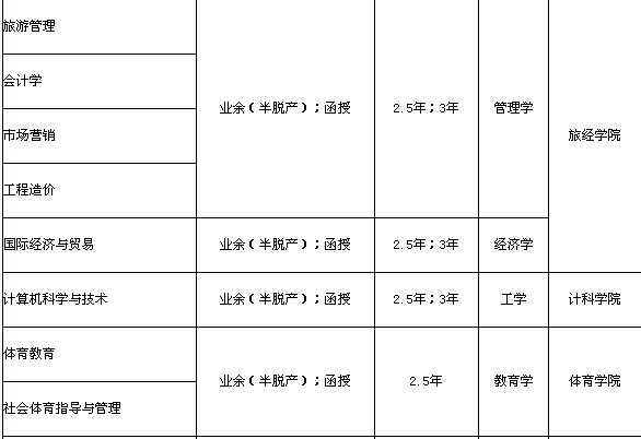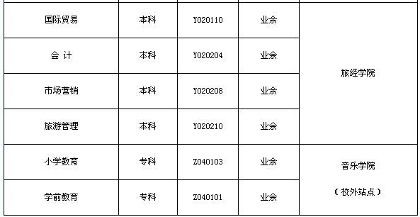 注:業(yè)余(半脫產(chǎn))學(xué)制為2.5年;函授學(xué)制為3年。??普猩鷮I(yè)一覽表