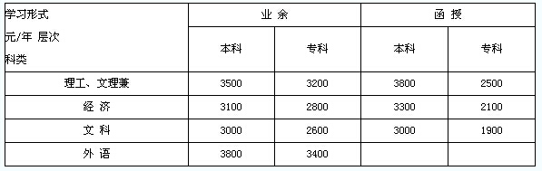 六、成人學(xué)費(fèi)收取標(biāo)準(zhǔn):(單位:元)