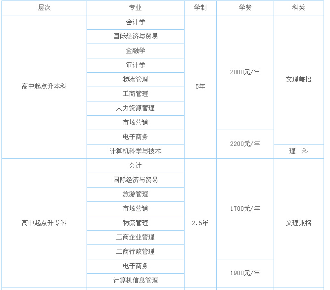 南京財經大學2014年成人高考招生簡章
