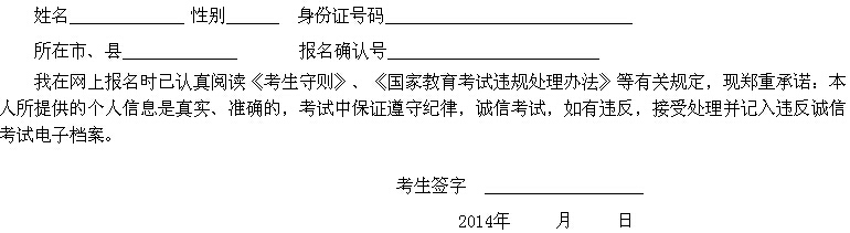 安徽省2014年成人高考誠信考試承諾書