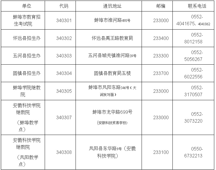 安徽蚌埠市2014年成人高考現(xiàn)場(chǎng)確認(rèn)點(diǎn)