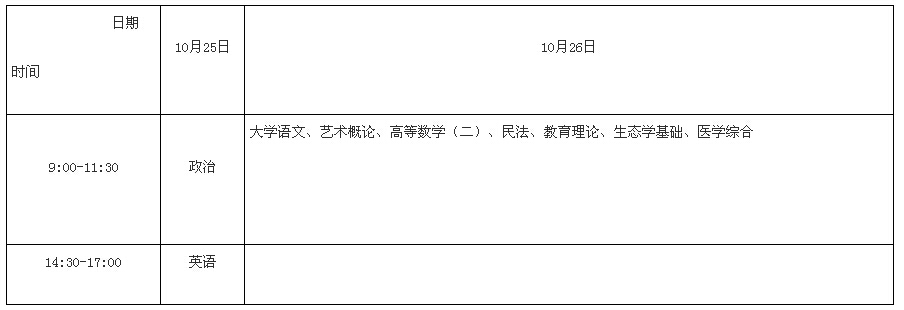 (二)專科起點(diǎn)升本科考試時(shí)間表