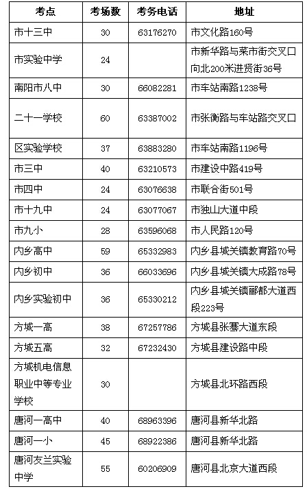 摘要 河南南陽市2014年成人高考考點安排