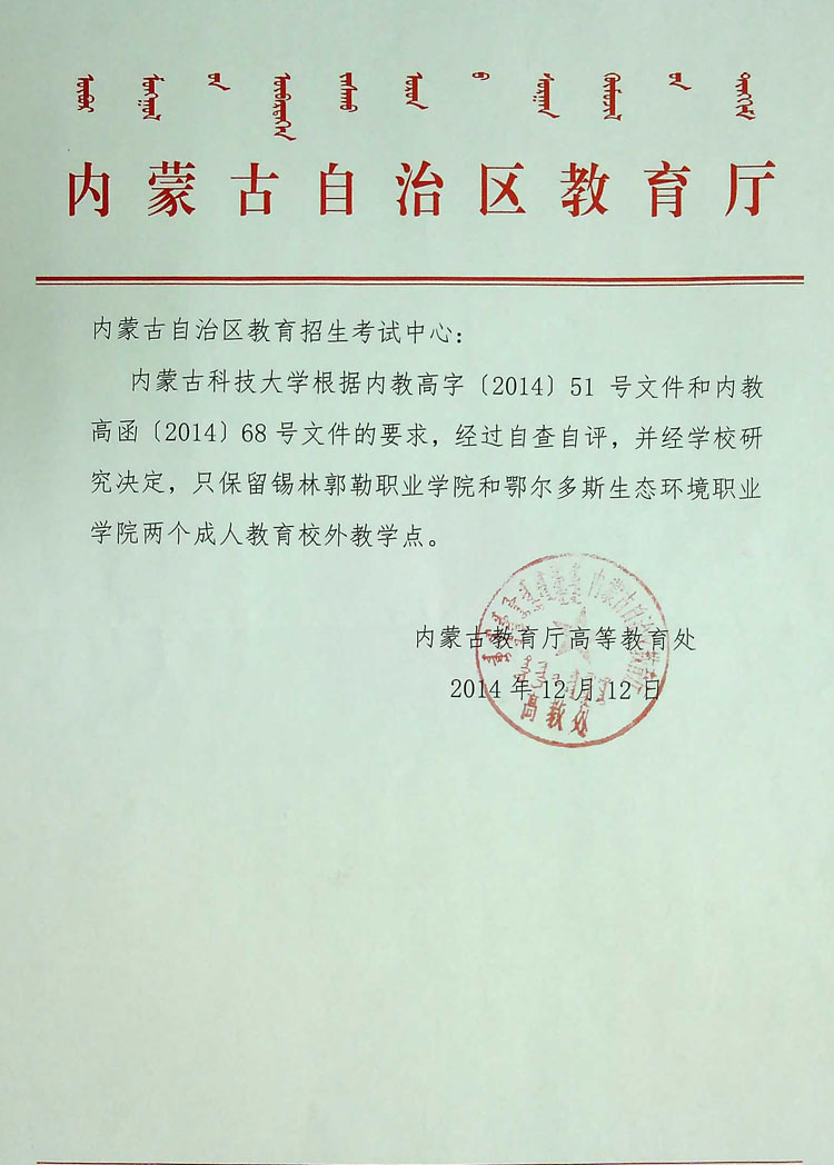 內(nèi)蒙古保留部分內(nèi)蒙古科技大學(xué)校外教學(xué)點(diǎn)的決定