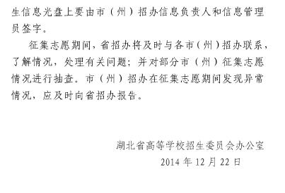 湖北省做好2014年成人高考招生征集志愿工作的通知