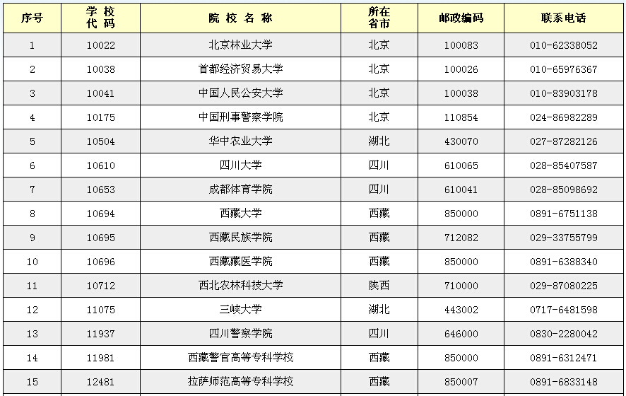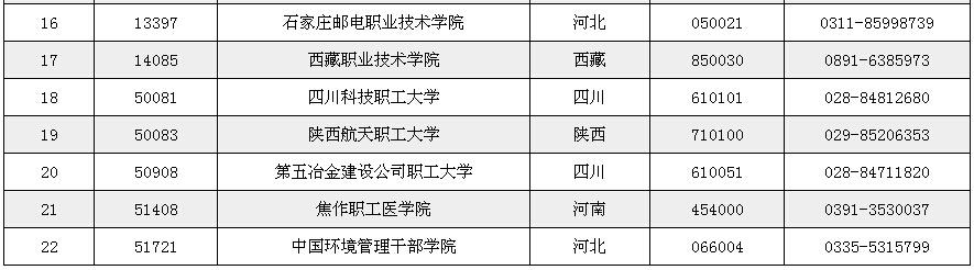 各招生院校聯(lián)系電話,如下: