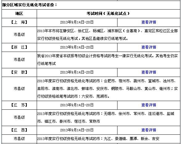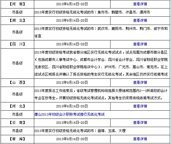 2013年初級(jí)會(huì)計(jì)職稱(chēng)無(wú)紙化考試省份