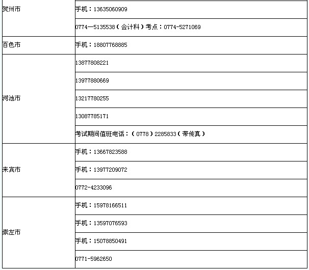 廣西省2013年初級會計職稱無紙化考試值班電話